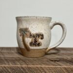 This beautiful 8 oz. mug with our logo on the back was custom made by Good News Pottery! Dishwasher and microwave safe; however, for extra care, hand washing is recommended. Note: Because these mugs are handmade, actual size, shape, and color may vary.